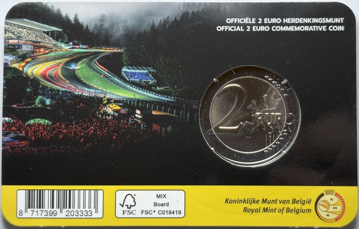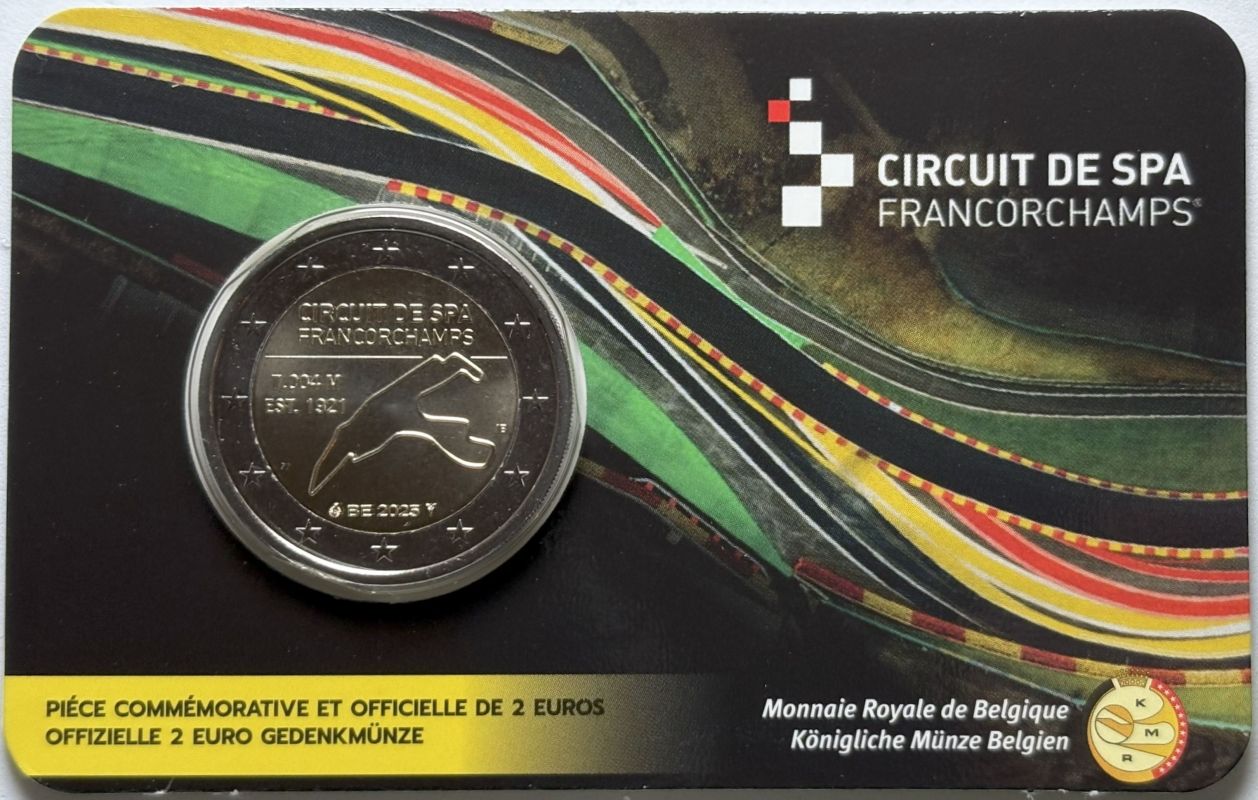 Belgien 2025 #2B 2 Euro Sondermünze “Rennstrecke Spa-Francorchamps – gelb” im Blister/Coincard