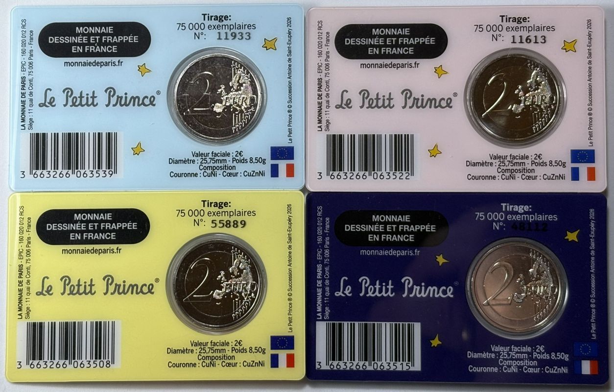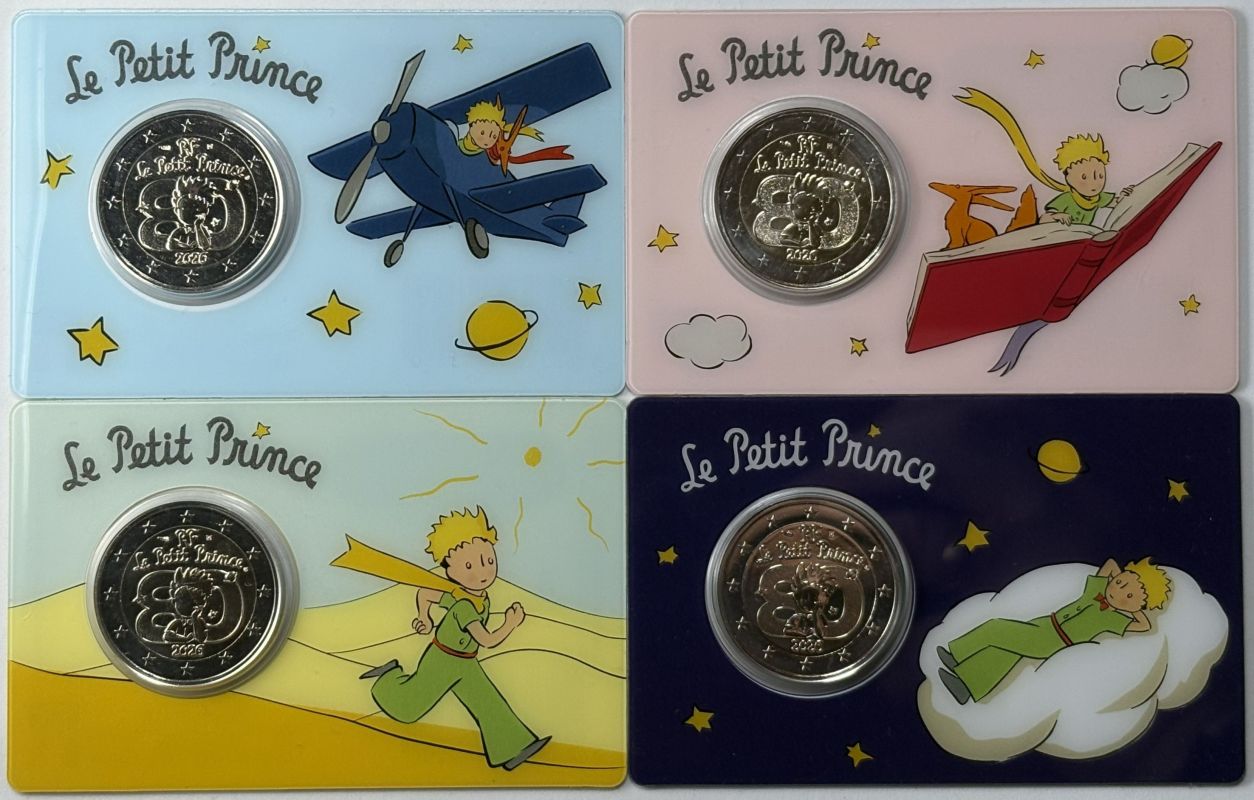 Frankreich 2026 #1 2 Euro Sondermünze “80. Jahrestag der Veröffentlichung des Kleinen Prinzen – Antoine de Saint-Exupéry” alle 4 Varianten in Coincard