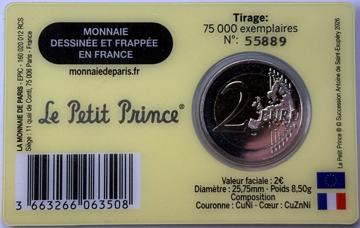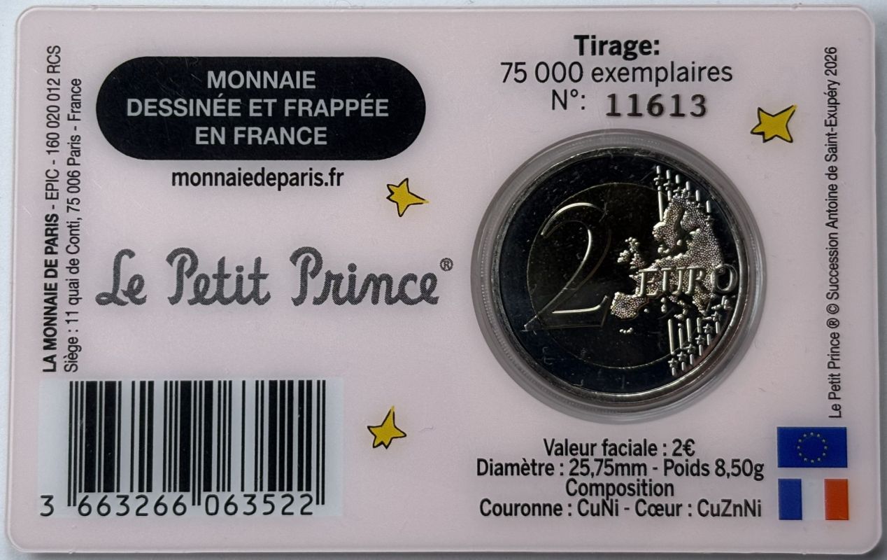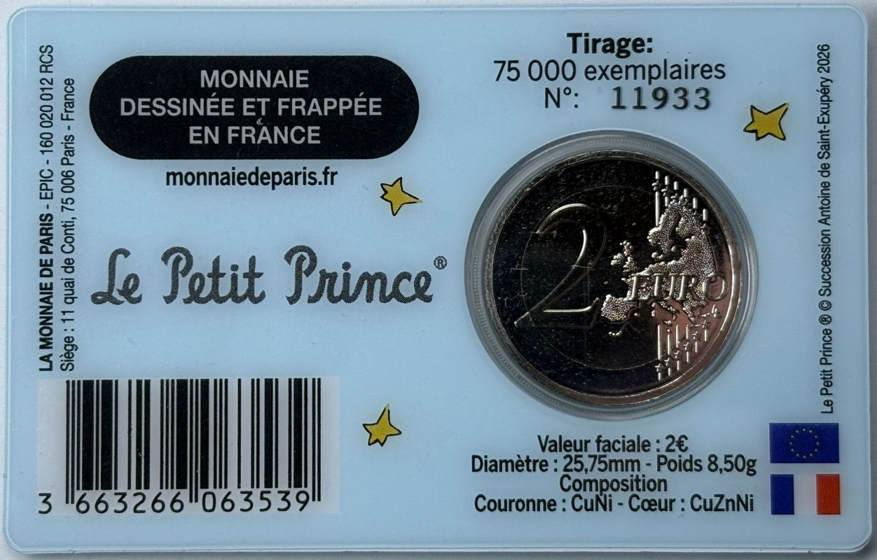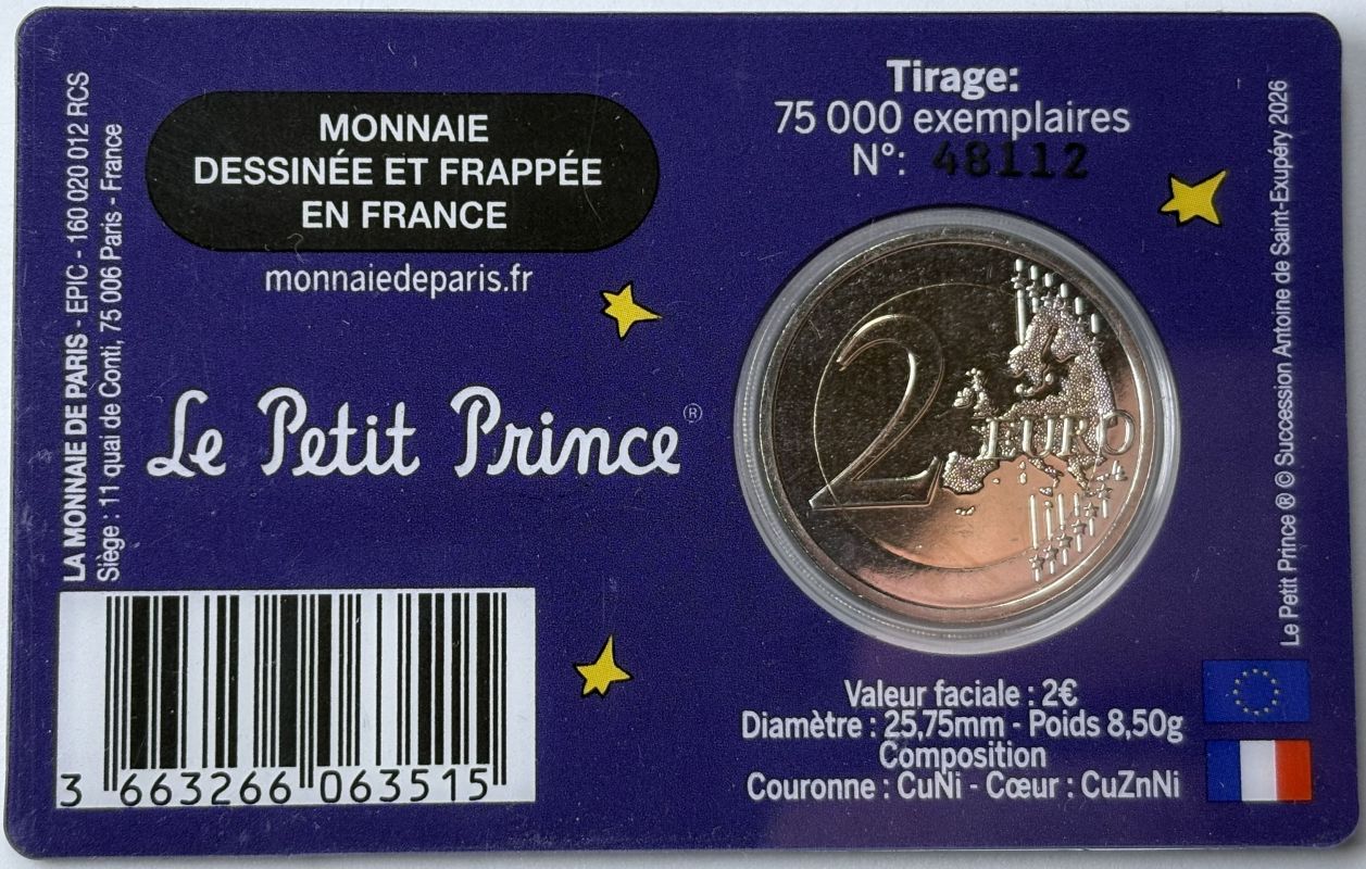 Frankreich 2026 #1 2 Euro Sondermünze “80. Jahre der Kleine Prinz – Antoine de Saint-Exupéry” alle 4 Varianten in Coincard
